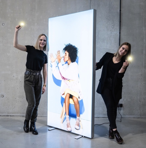 It can be transported in a practical trolley and is the first solution to combine a profiled aluminum box with a high-resolution printed display and powerful LED lighting.