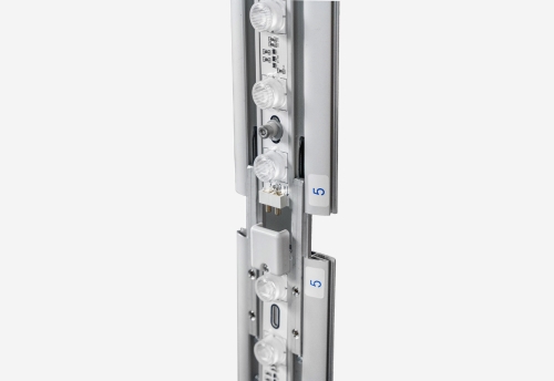 There’s something really smart about the magnetic side panels, which allow you to connect multiple cabinets in a creative way. Like all Be Display products, the display on each structure is completely interchangeable and economical.